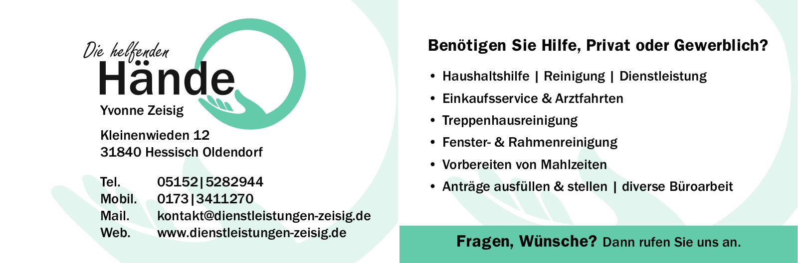 Die helfenden Hände, helfen da wo Hilfe benötigt wird. Egal ob privat oder gewerblich, krank, pflegebedürftig oder einfach zur Entlastung.